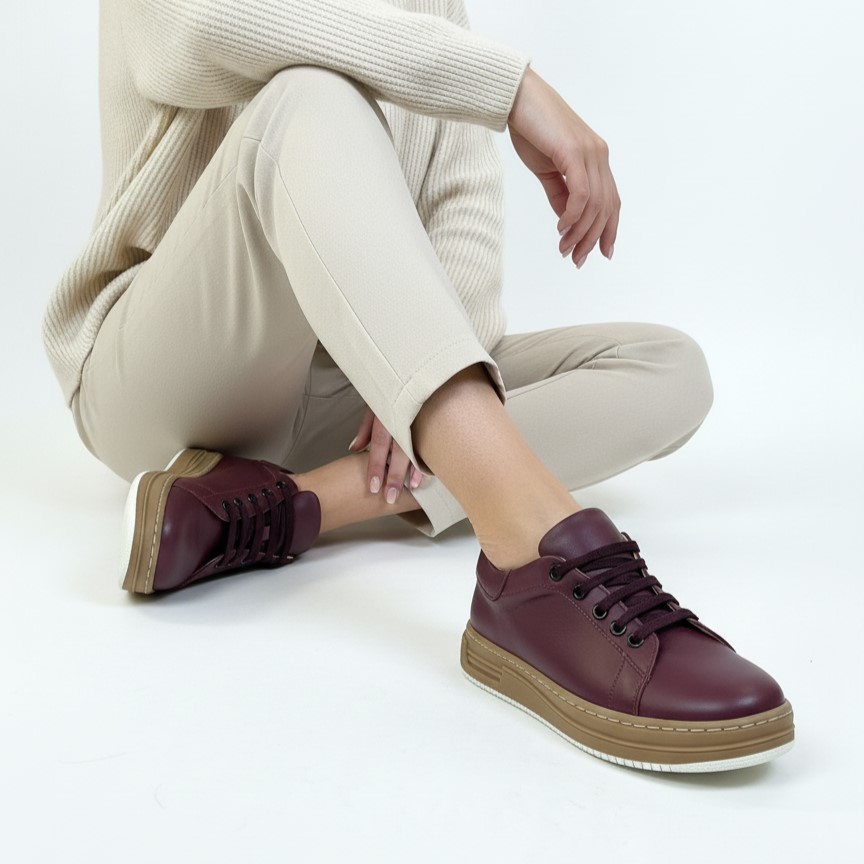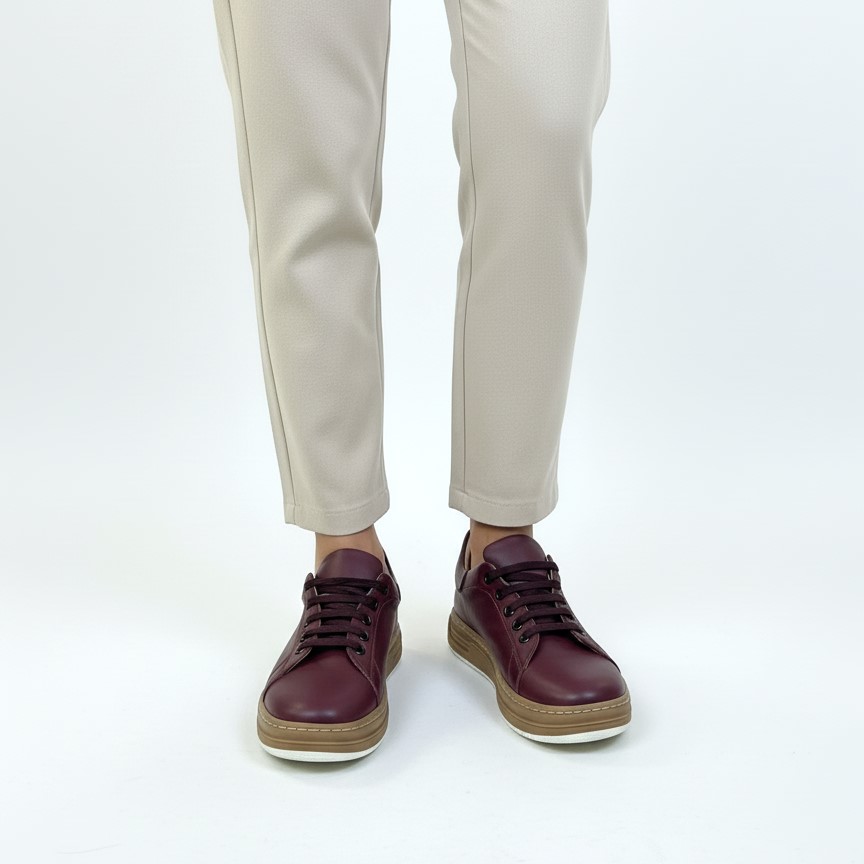 Fabricadas en piel natural de alta calidad y con un elegante tono burdeos, estas zapatillas combinan estilo, suavidad y una comodidad excepcional.